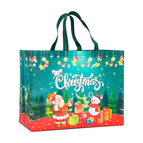 Bolsa de compras no tejida de dibujos animados de Papá Noel de Navidad Exposiciones de regalos de supermercado reciclables laminados respetuosos con el medio ambiente