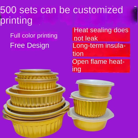 Ingrosso ciotola di alluminio usa e getta con coperchio grande contenitore di processo in oro con vesciche rotonde